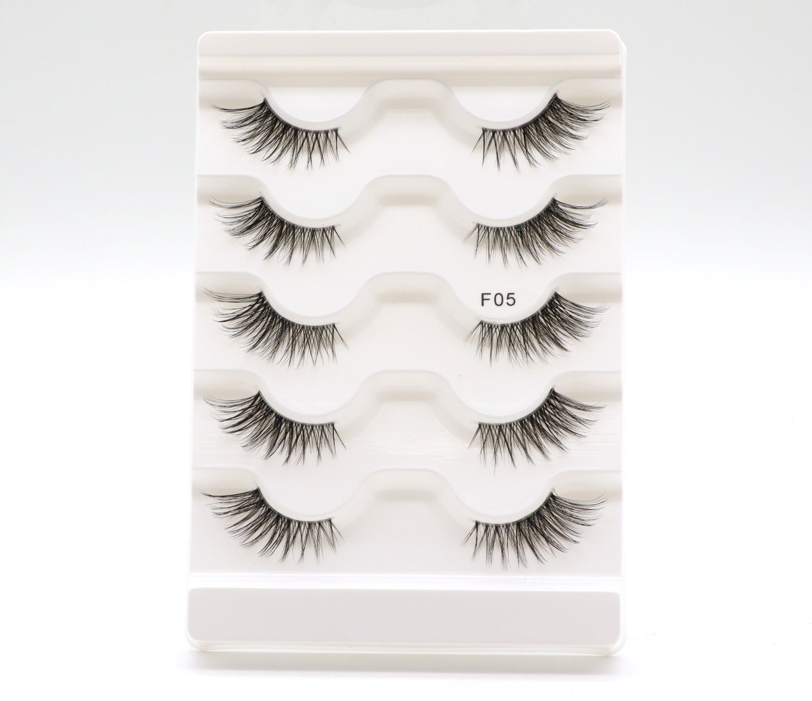 JAHRA 5 pairs False Eyelashes Half Lashes Cat Eye Strip NaturalHalf Lashes with Clear Band Cat-Eye Eyelashes Fluffy Wispy False Eyelashes Natural Look (Lash F05)